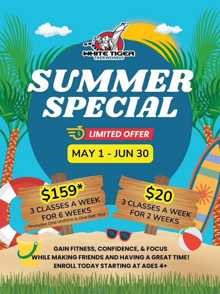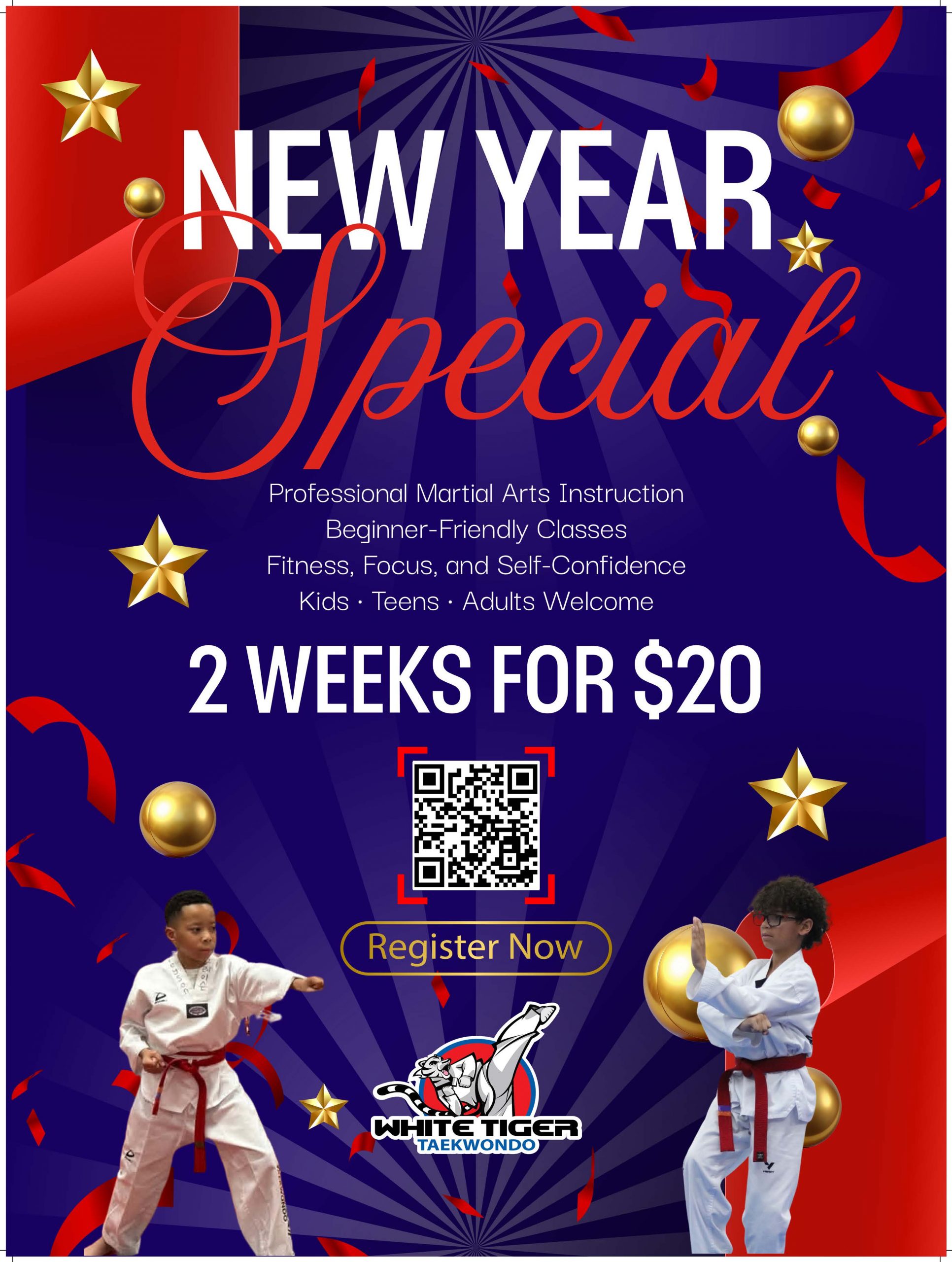 Get started now with one of our WEB SPECIALS and find out how you can be healthier, happier, and more confident with White Tiger Martial Arts Lewisville training!